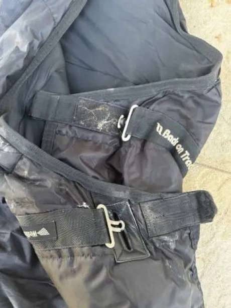 ATTENTION: La couverture mesure 155 cm, mais les sursangles avant ont été ajustées pour convenir à un cheval de 145 cm.