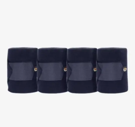 Nos bandes de repos (400 x 12 cm) sont conçues dans un tricot doux mais solide avec un mélange de laine acrylique qui offrent épaisseur et durabilité. Elles sont extrêmement respirantes et elles comportent une fermeture velcro robuste. Vendues en set de 4 dans une housse à fermeture éclair, elles sont lavables en machine à 30° (pas de sèche-linge). Ces bandes de repos forment une parfaite combinaison avec nos cotons américains aussi bien pour le repos que durant les transports. Elles peuvent être également utilisées avec nos sous-bandes de travail.