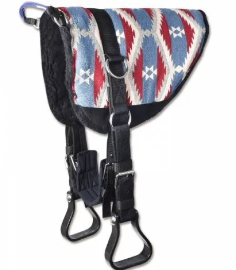 Coussin de selle avec matelassure souple équipé d’étrivières fixées et d’étriers.