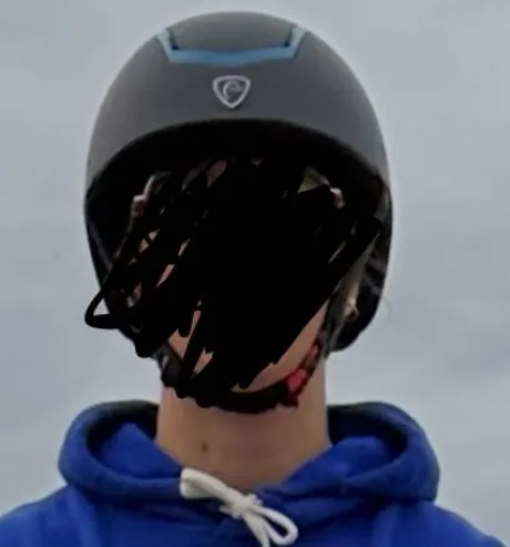 Bombe equitheme avec détails bleu, en tres bonne état avec sa housse de protection et 3 tailles différentes avec 54/55 et 56.