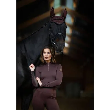Luxueux bonnet d’oreilles crocheté dans un brun élégant avec une touche de couleur rouge. Décoré d’un écusson en satin ton sur ton sur le devant, d’un magnifique passepoil noir et d’un écusson Equestrian Stockholm en brun violet. Ce bonnet d’oreille offre à la fois une protection contre les insectes et une réduction du bruit. Il est doté d’un tissu élastique au niveau des oreilles pour plus de confort.
