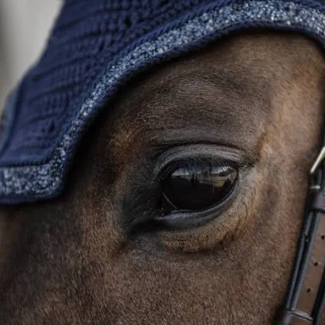 - Le tissu qui entoure les oreilles est élastique afin de s’ajuster parfaitement sur les oreilles du cheval.