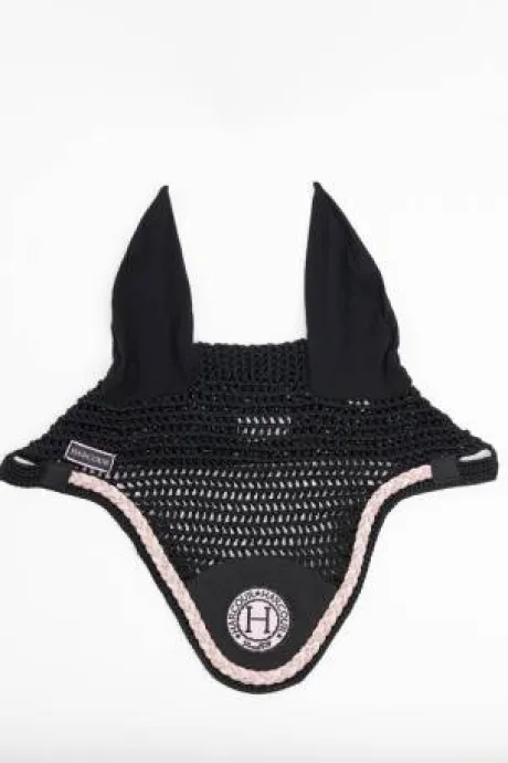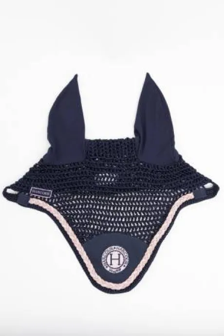 Le bonnet Suzette de la marque Harcour est confectionné à la main avec des mailles tricotées, alliant esthétique et confort pour votre cheval.