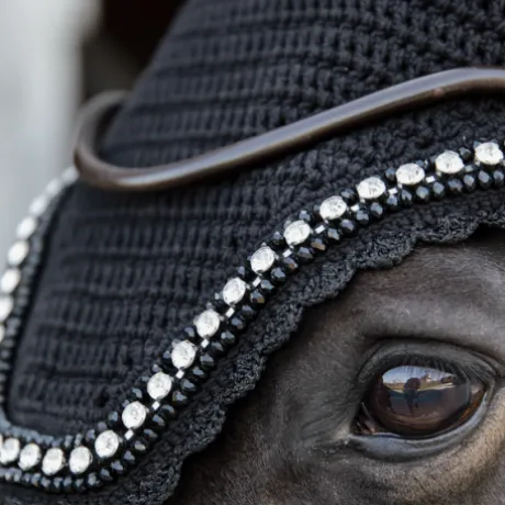 Les matériaux des oreilles sont extensibles pour s’adapter à tous les types de chevaux. Nous avons inclus une pièce de cou prolongée pour éviter que le voile anti-mouches ne glisse sous la bride. Il n’y a pas de logo sur le devant du voile anti-mouches, il y a donc encore de la place pour une broderie. Lavage à la main uniquement !