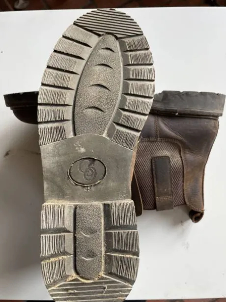 Boots de marque CSO Nubuck Brun, cuir de buffle huilé, doublure cuir, larges soufflets élastiques, Portées 3 fois, quasi neuves, Pointure 45