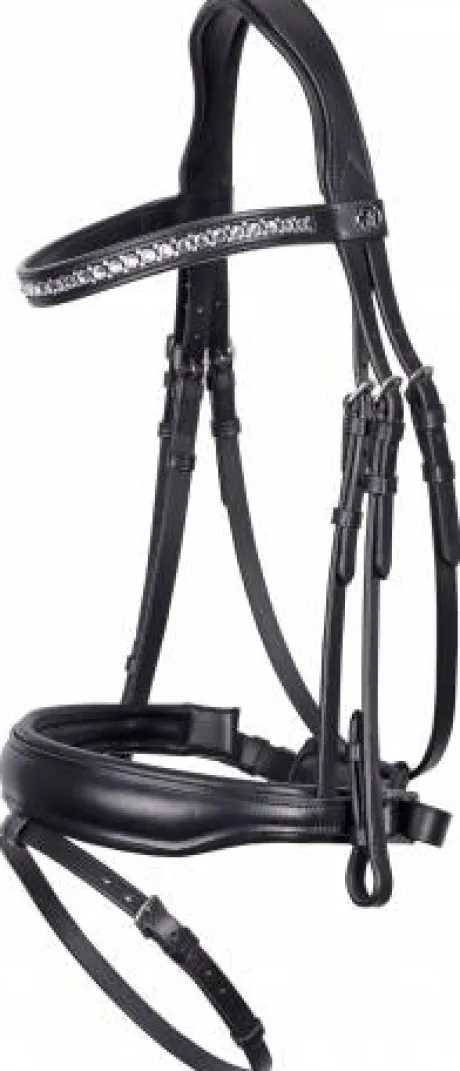 - Bridon de luxe, avec un rembourrage extra doux sous la têtière et la muserolle.