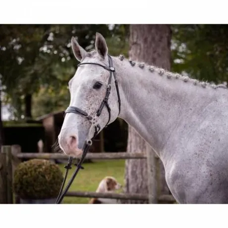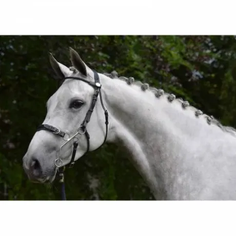 - Un bridon spécialement conçu avec des montants adaptés pour cette ennasure spécifique qui permet une alternative aux mors traditionnels.