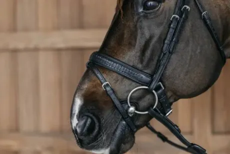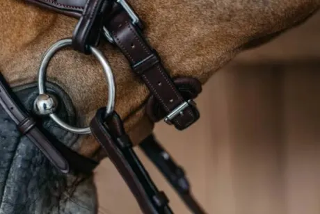 Ce bridon est équipé d’une muserolle médium élégante avec un noseband détachable de ½ ». La muserolle est large de 30 mm, ce qui répartit mieux la pression et est plus confortable pour votre cheval. Le bridon est doté d’un pull back et d’un frontal anatomique en forme de V. Les oreilles du cheval sont libres de bouger grâce à la têtière en forme de S.