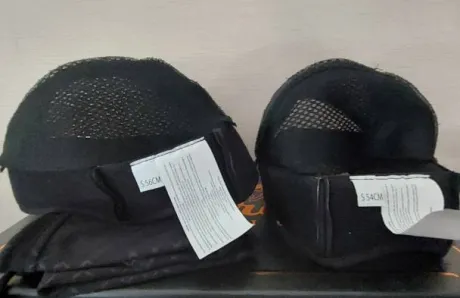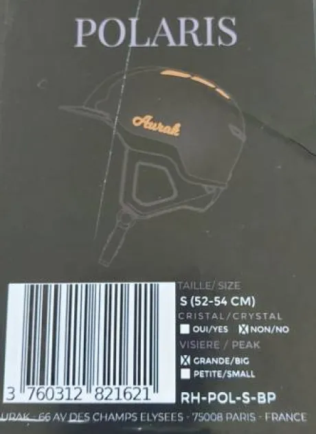 Neuf, sortie de boite pour photos. Taille S 52-54 cm Modernité & élégance. Vendu par Aurak 359 euros Rehaussé de ventilations en métal cuivré, notre modèle noir mat Polaris offre un mélange subtil de modernité et d’élégance. Sangle et pads d’oreilles en cuir de vachette pleine fleur. Fourni avec 3 doublures intérieur détachables. Fiche technique • Certifications : certifié par le laboratoire français POURQUERY : ICERTB07/001 + EPI UE 2016/425 + NF EN 1384:2017 + NF EN 1384:2023 • Ventilations : véritable métal injecté finition or rose • Coque : ABS injecté, finition noir mat • Système de fixation : système breveté Fidlock, pour une fixation de sangle ultra rapide et simple plus une très grande sécurité en cas de chocs. • Calotin : haute sécurité, ultra ventilé • Gainage du casque : cuir pleine fleur résistant aux intempéries • Doublure intérieure : façon Alcantara 13 coussins de confort • Logos et bouton pression : métalliques et bouton tête en verre • Grilles de ventilation : métalliques • Points de fixation : casque avec 4 points de fixation • Sangle et pads oreilles : cuir pleine fleur • Matériaux : matériaux haute qualité certifié REACH pour le respect de la planète et de l’humain • Conception : surpiqûre, couture, assemblage et montage à la main Nos casques sont surpiqués, cousus, assemblés et montés entièrement à la main, ce qui signifie que chaque casque est quasiment unique c’est la raison pour laquelle quelques légères différences peuvent apparaitre entre deux casques de même modèle. Fournis avec un sac de rangement en coton.