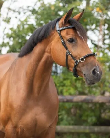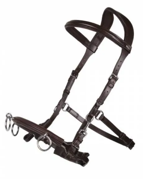 De forme anatomique, ce caveçon peut aussi être utilisé avec un mors.