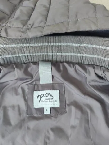 Magnifique doudoune Molly à manches longues et capuche, grise, de marque Penelope Leprevost. En taille L mais me convient parfaitement et je fais une taille 36 habituellement (mais je suis grande, 1m75).