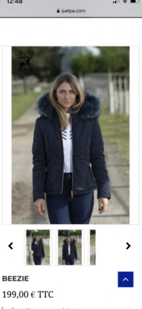 Vend doudoune Ju et Pa noire taille S. Bon état, un seul défaut : manque un strass au niveau du logo (voir photos). Capuche et fourrure amovibles.