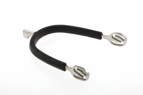 Eperon pessoa à tête marteau en inox est recouvert de caoutchouc noir antidérapant. Les oeillets en S aide au positionnement de la lanière sur la cheville et offre plus de maintien.