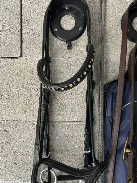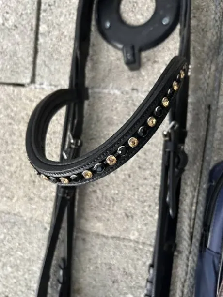 Filet noir, têtière avec strass, Taille Cheval, de marque Horze, Vendu sans le mord.