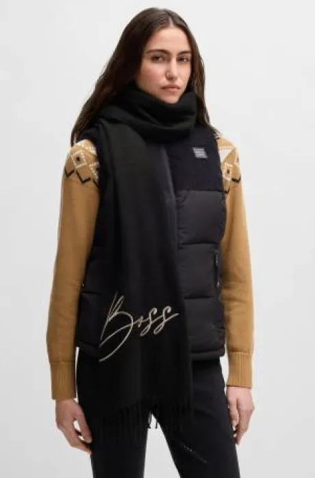 L’écharpe BOSS se distingue par un tricotage fin en fils très doux, offrant un confort exceptionnel tout au long de la journée. Sa légèreté n’enlève rien à la qualité remarquable du foulard, qui se pare de franges élégantes pour une touche raffinée. Le grand logo BOSS brodé, emblème de sophistication, apporte une note distinctive et moderne à votre tenue. Parfaite pour relever vos looks d’hiver avec style, cette écharpe s’accorde parfaitement avec le bonnet coordonné, créant un ensemble harmonieux et chic. Un accessoire indispensable pour allier confort et élégance au quotidien.