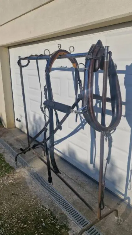 Voici une paire d’harnais léger utilisée sur des Franches-Montagnes. État très correct car utilisé uniquement lors de mariage.