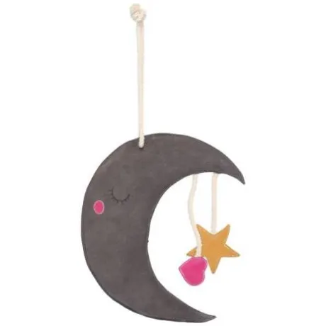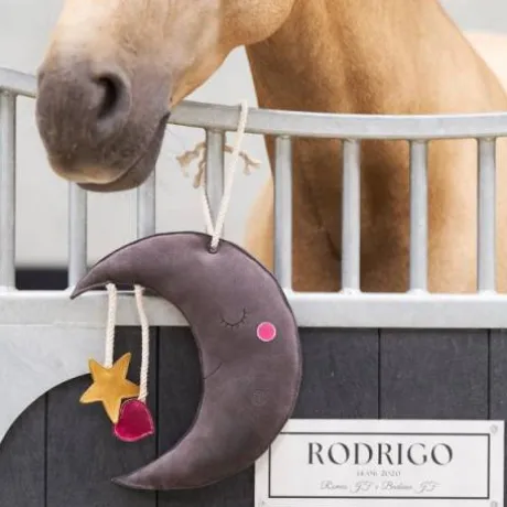 Jouet d’écurie en forme de lune, alias Moony, avec un extérieur en daim.