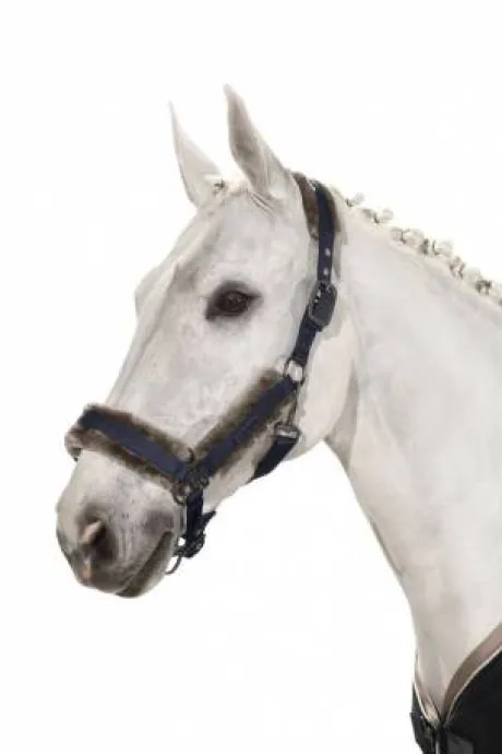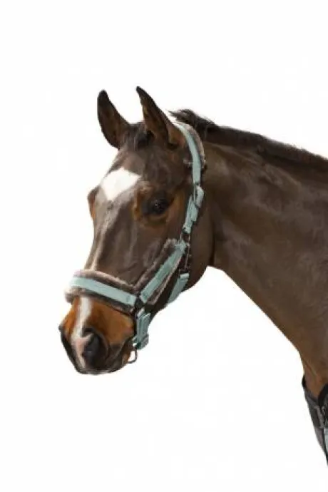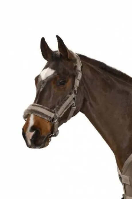 - Doublure de la têtière, des montants et de la muserolle avec du faux mouton amovible de couleur taupe foncé