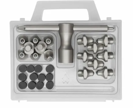 Kit de crampons FASTUDS® filetage M10. Taraud intégré au crampon : vous n’avez plus besoin de refaire les mortaises avant de cramponner ! Vissez directement vos crampons, le filetage se répare en même temps. Vous cramponnez 2 fois plus vite ! Idéal pour les compétitions.