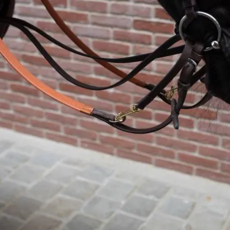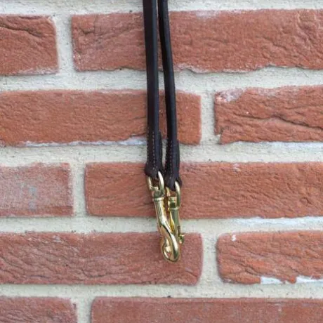 Cet enrênement Howlett en cuir 1er choix, tannage végétal en fosse à l’écorce de chêne dispose d’une bouclerie en inox et de mousquetons en laiton.