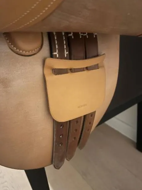 Original Hermès jumping saddle from 2001, handmade in France – stamped with model no. 39239.