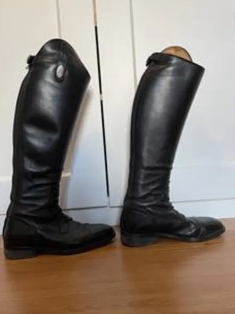 Bottes d’équitation DeNiro, modèle Fildona à bout carré, élastiques sur le devant et le long de la fermeture éclair. Elles sont en très bon état car toujours très bien entretenues avec uniquement du cirage incolore. Elles ont toujours été mises juste avant de monter et retirées juste après le travail.