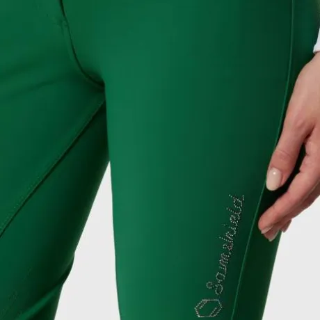 Détails en cristaux Swarovski sur la cuisse SAMSHIELD et poches arrières ornées de Crystal Fabric Swarovski.