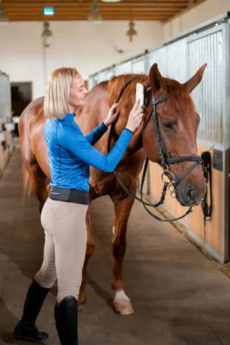 Pour préserver la qualité de votre pantalon Cavalliera, il est recommandé de le laver avec des couleurs similaires. Fermez le pantalon et retournez-le avant de le mettre en machine. Évitez de surcharger la machine et choisissez un programme d’essorage doux. Les fibres synthétiques ne supportent pas la chaleur du sèche-linge, il est donc conseillé de laisser sécher à l’air libre sur un cintre, sans tordre le pantalon.