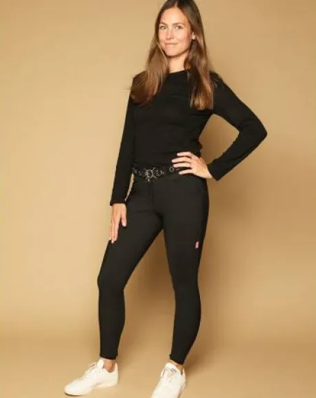 - Pastille corail fluo sur la cuisse, logo GEM sur le passant arrière de la ceinture, les détails le subliment.