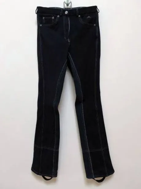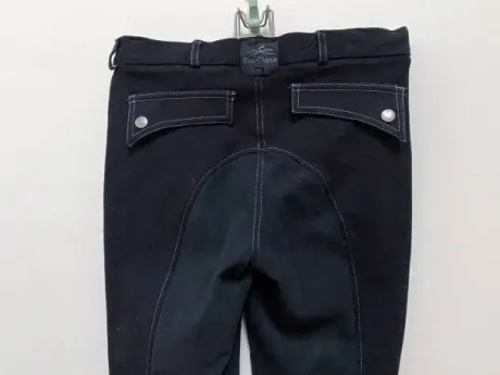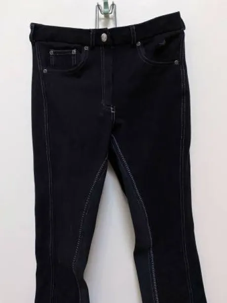 Pantalon jean d’équitation couleur noir de la marque Equitheme taille 38 ayant été très peu porté et donc en très bon état.