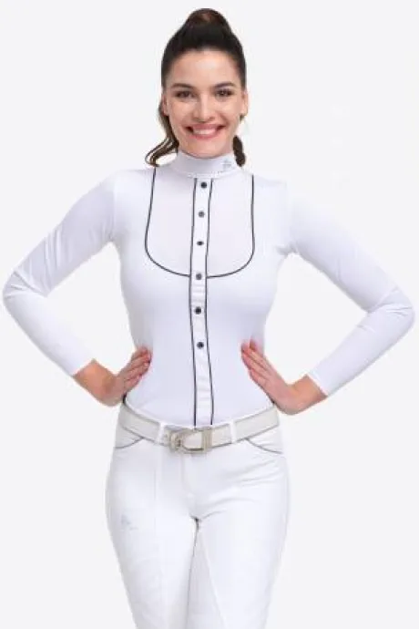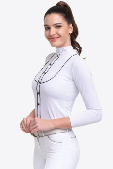 Découvrez le polo de concours GENTLE RIVER de la marque Cavalliera, un choix idéal pour allier esthétique et fonctionnalité lors de vos compétitions équestres. Conçu avec des tissus respirants et légers, ce haut de compétition est parfait pour les cavalières de tous âges.