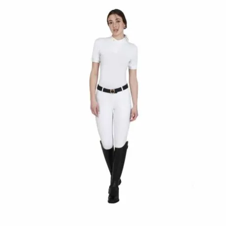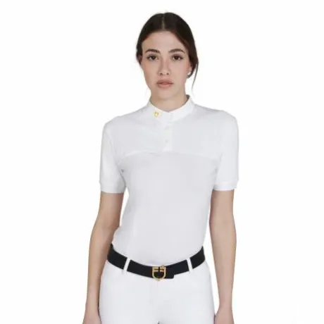 Le polo comporte des boutons et un col mandarin en coton avec le logo Equestro.