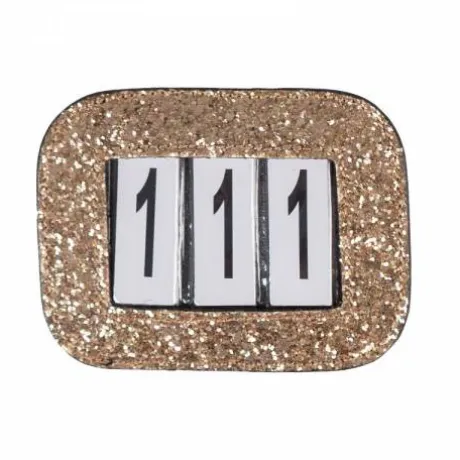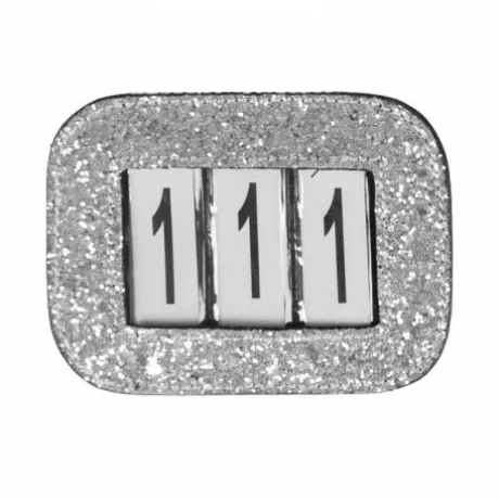 Porte numéro pour compétitions orné de paillettes, alliant esthétique et fonctionnalité.