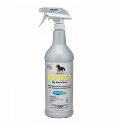 TRI-TEC 14 spray de 946ml est un insecticide prêt à l’emploi, contre mouches, taons, tiques, moustiques et autres insectes rencontrés dans l’environnement du cheval