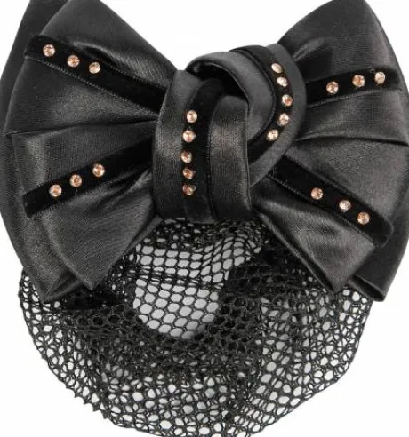 Résille avec noeud satin et pierres rosegold sur barrette