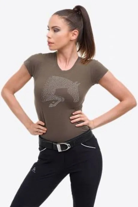 Ce T-shirt en coton doux allie confort et élégance, idéal pour les femmes amoureuses des chevaux. Sa coupe flatteuse et sa texture incroyablement douce en font un vêtement agréable à porter, que ce soit pour une journée au centre équestre ou pour se détendre après une compétition.
