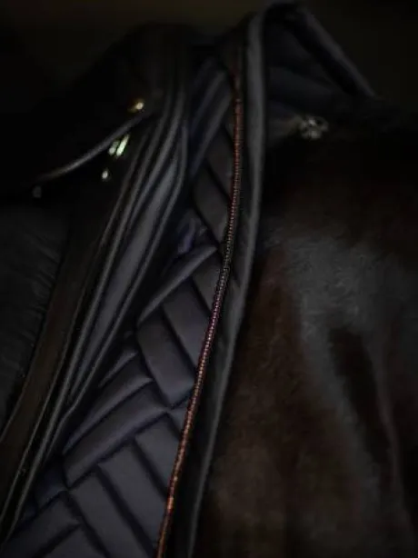 Détails : Bordure noire avec logo Equestrian Stockholm rosegold / Surpiqures modernes