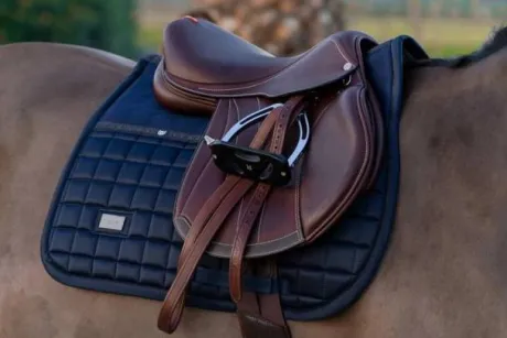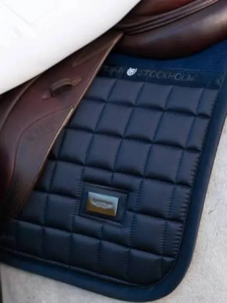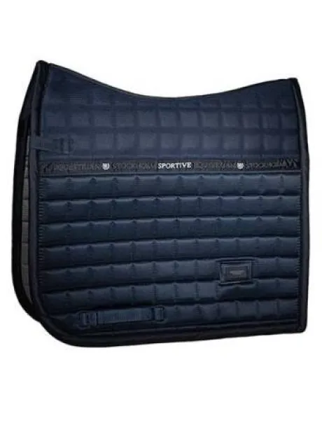 - Tapis au design sportif bleu marine, avec du mesh bleu décoratif et des détails chromes.