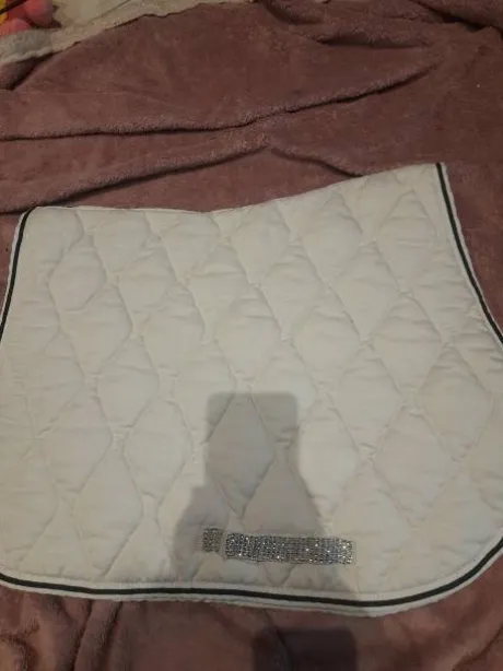 Tapis d’équitation blanc à strass tu as raison que je le vends et que ça ne va pas chevaux de mon club il est en très bon état je l’ai mis que trois fois
