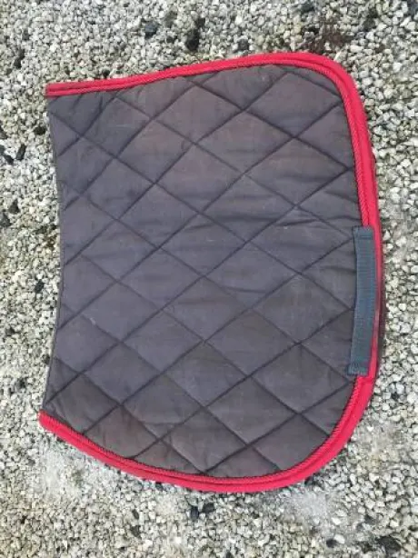 Je vends mon tapis équithème gris avec un liseré rouge de taille cheval.