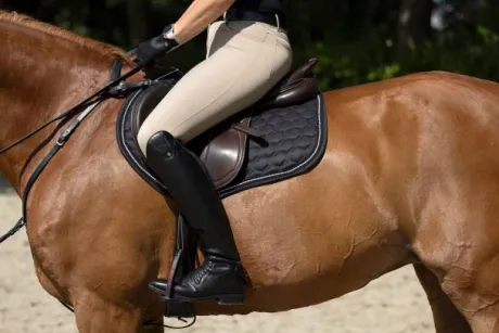 - De forme anatomique, ce tapis possède une doublure respirante, des passants de selle et de sangle
