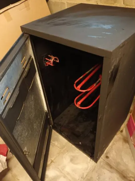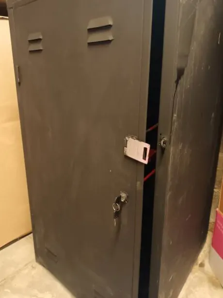 Le casier est utilisé mais en bon état et repeint en noir mat.