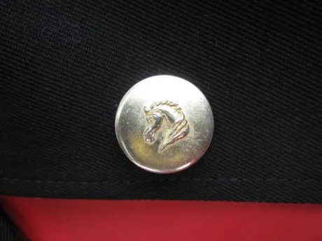 Doublure rouge, boutons dorés avec tête de cheval gravé.
