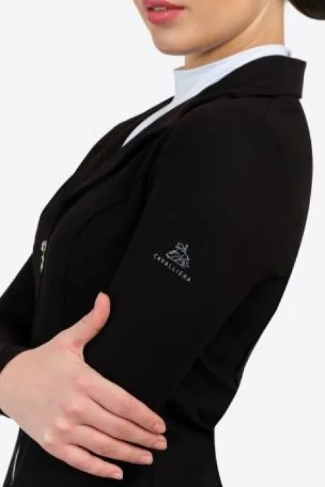 La veste de concours ZIP CHIC de Cavalliera est conçue en tissu jersey extensible, alliant confort et esthétique minimaliste. Sa coupe blazer courte et sa fermeture éclair en font un choix idéal pour les cavaliers recherchant un look raffiné tout en permettant une liberté de mouvement optimale grâce à la technologie Second Skin.