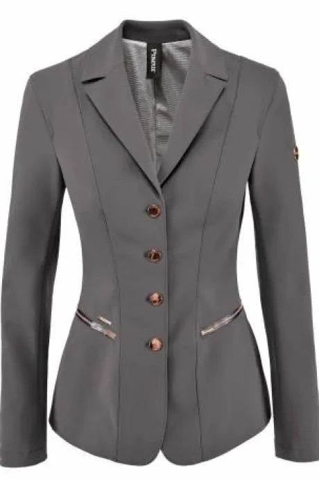 Veste équitation jumping Pikeur Paulin. Couleur grise et boutons rosés. Annoncé T40 mais taille plutôt T38. Parfait état, mis3me 4/5 fois.