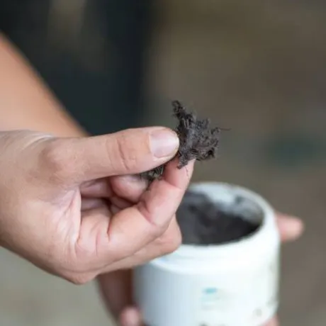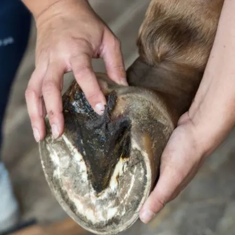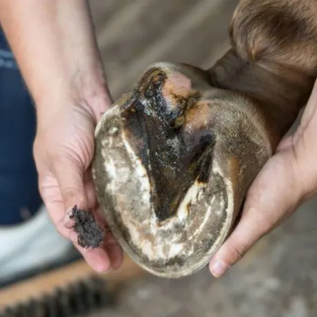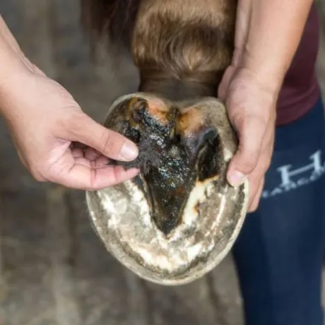 Formule argileuse fibreuse destinée à traiter les cas graves de pourritures profondes des fourchettes ou des lacunes.