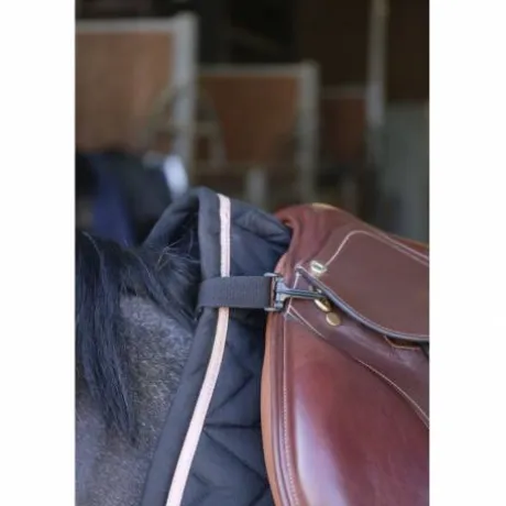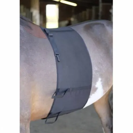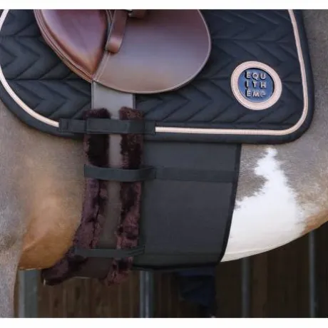 - Idéale pour les chevaux à la peau sensible qui marquent vite ou blessent à l’éperon , cette bande élastique se place à la hauteur de la selle, directement sur le cheval , avant le tapis et la selle.