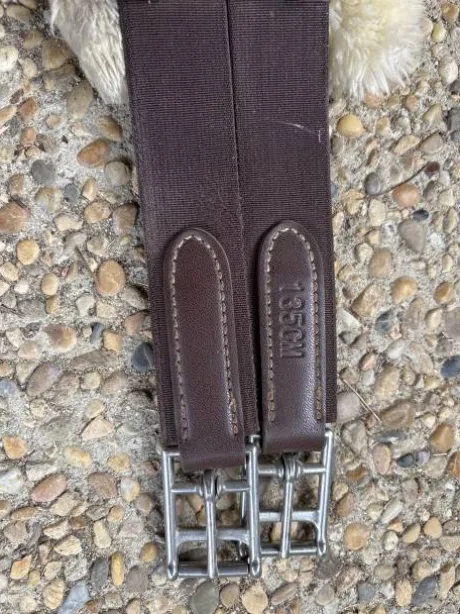 Bavette cuir, avec renfort et confort en mouton à l’intérieur, en scratch lavable. Sanglons élastiques de chaque côté.