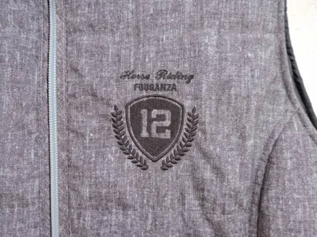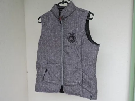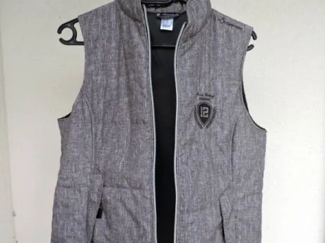 Bombeurs sans manche de mi-saison (printemps/automne), marque : Fouganza (Decathlon). Taille EU 42, couleur grise, très peu mie, très bon état.