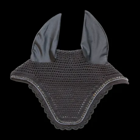 Notre Fly Veil Stone & Pearl combine le look américain moderne et l’expertise de Kentucky Horsewear. Ce bonnet est crocheté à la main pour une meilleure durabilité. Il possède un pourtour en strass et perles. Le tissu autour des oreilles est extensible et ajusté. Il protège les oreilles du cheval contre les mouches pendant le travail. La partie au niveau du cou est plus longue et ne peut donc pas glisser. Ce bonnet n’a pas de logo visible, le cavalier ou les sponsors peuvent donc broder leur propre logo. Lavage à la main uniquement.